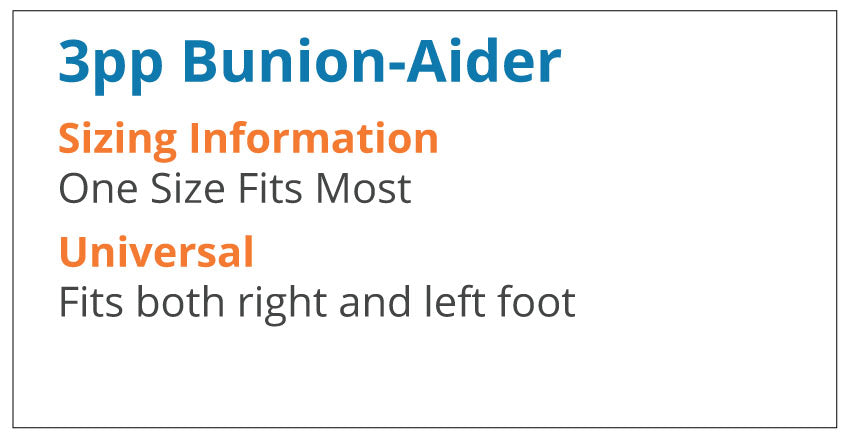 The 3pp® Bunion-Aider™ corrects the alignment of the great toe by applying a gentle stretch to stabilize the toe while relieving Hallux Valgus (bunion) pain. Ideal for those with mild angulation and for use following bunion surgery.