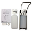 Includes the wall plate, mounting kit, and empty bottle. The dispenser is easy to clean and dishwasher safe.