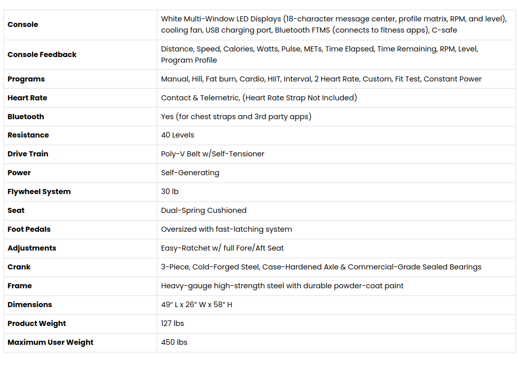 - 40 levels of resistance to satisfy the needs of beginners or advanced exercisers