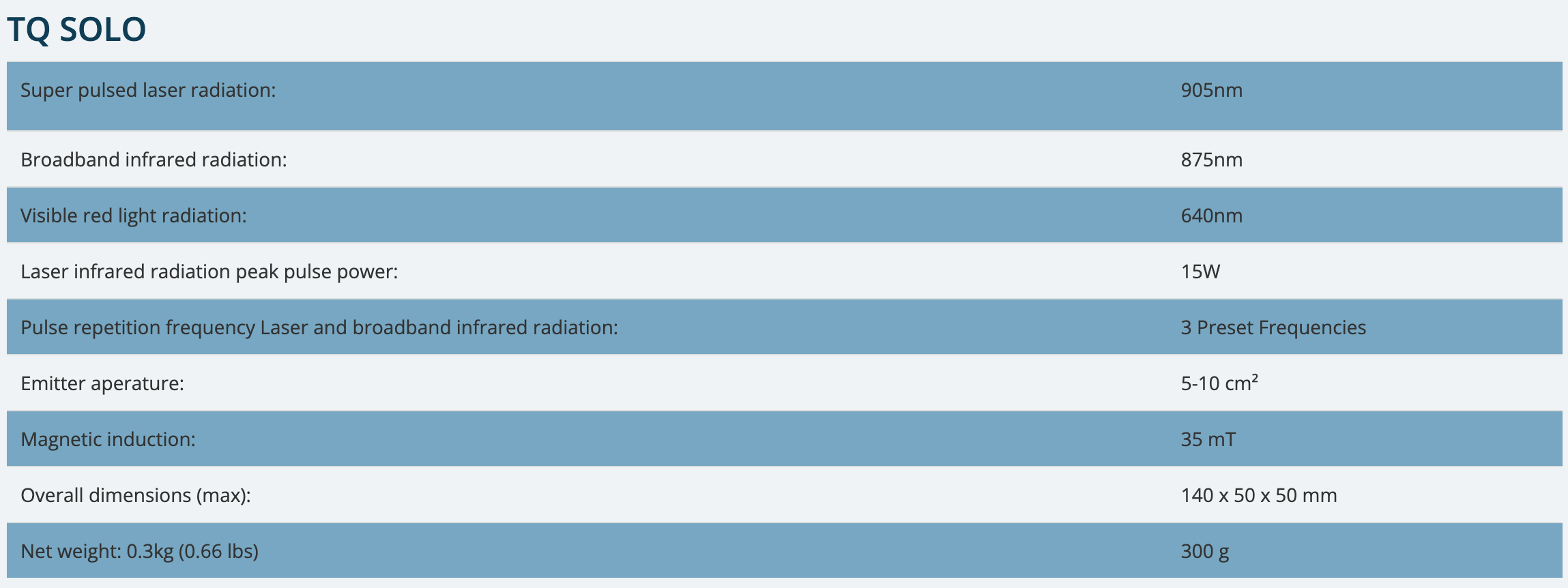 The TQ Solo is designed for ultimate convenience, with its lightweight and compact design allowing you to carry it effortlessly wherever you go. Equipped with a long-lasting rechargeable lithium battery, providing up to 18 hours of use, it ensures that effective cold laser therapy is always within reach, no matter where you are.