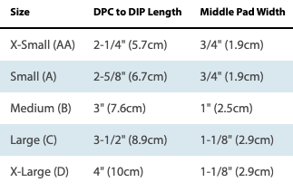 - For sizing, measure on the volar surface from the MP crease to the distal finger crease.