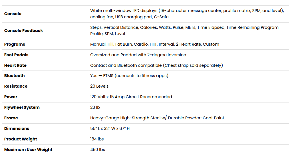 16 inch maximum step height with 20 levels of resistance satisfy the needs of beginners or advanced exercisers.